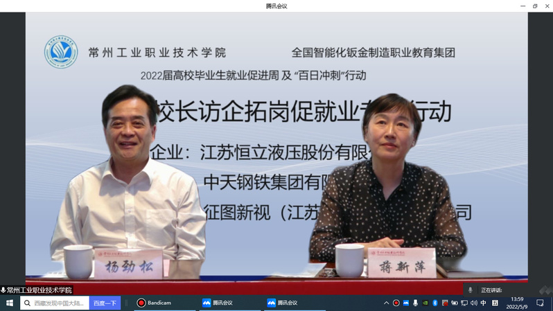 为深入贯彻落实国家和江苏省关于高校毕业生就业工作的决策部署,积极应对疫情影响,千方百计拓岗位、攻坚克难促就业,我校联合全国智能化钣金制造职业教育集团开展“云上”校企宣讲交流会,为学生精准就业提供高质量平台。校长杨劲松,副校长蒋新萍参与本次交流会。