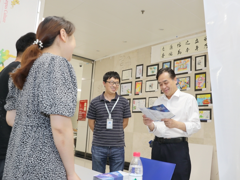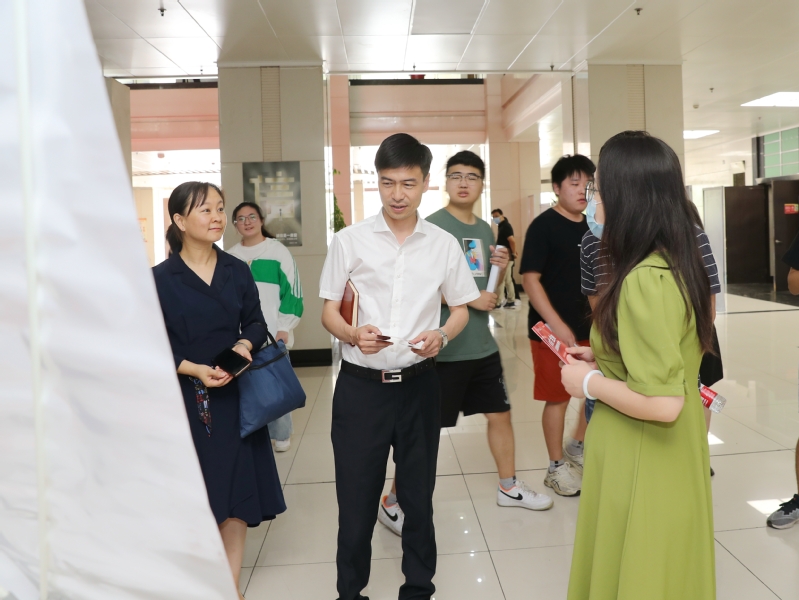 为进一步强化就业优先政策,扎实推进实习就业服务,6月9日下午,我校材料工程学院在图文楼一楼大厅举行实习就业专场招聘会。校长杨劲松、副校长吴丽云与材料工程学院领导来到招聘会现场,与用人单位、学生面对面交流,了解招聘及就业情况。