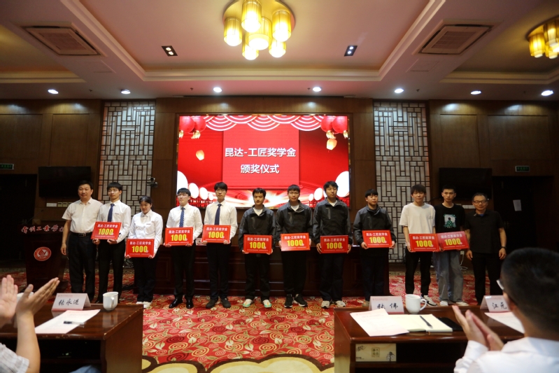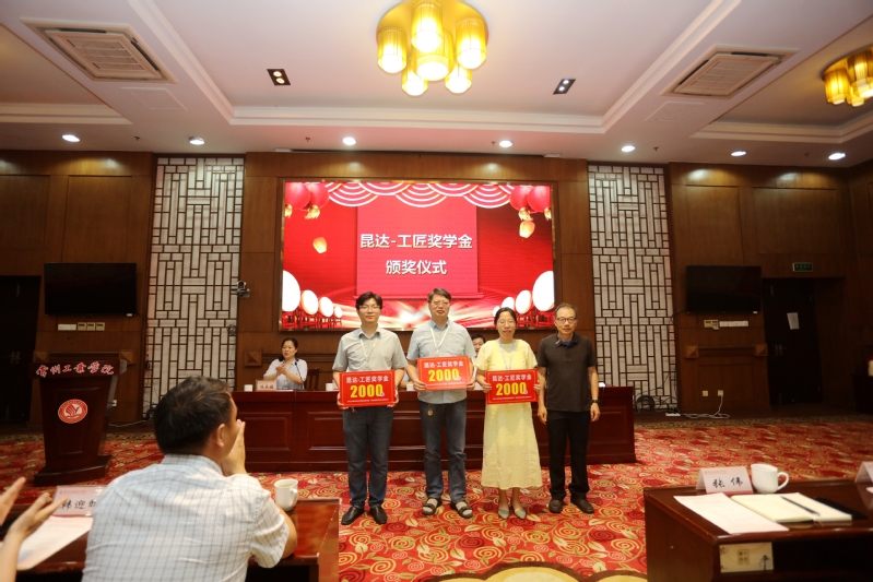 姚庆文宣读了首届工匠奖学金获奖人员名单。李興麟为获奖师生颁奖。