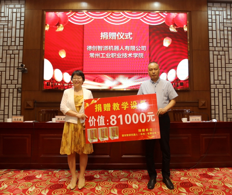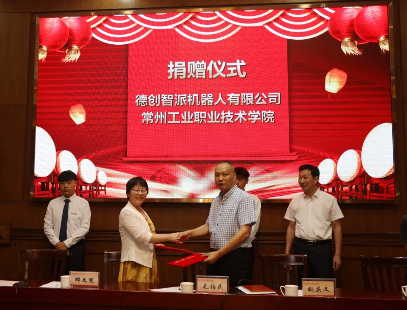 德创智派机器人(苏州)有限公司向我校捐赠机器视觉教学设备3套,总价值81000元,毛伯民与邓文寒在捐赠协议上签字。