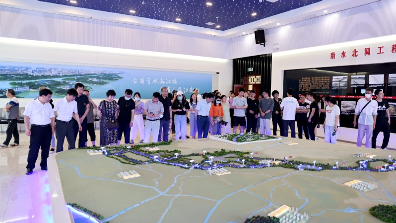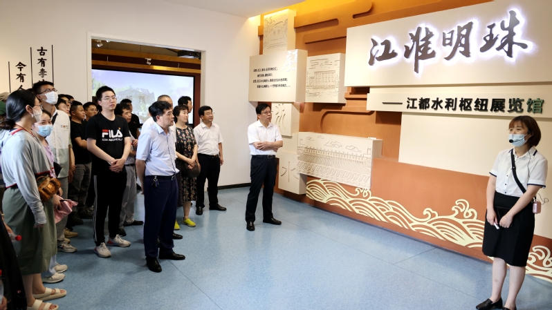在扬州,学员们来到扬州三湾生态文化公园,参观扬州中国大运河博物馆。博物馆内,近3200公里的大运河被高度浓缩,一幅有关于千年历史的画卷被徐徐展开。馆内展出的古籍文献、书画、碑刻、陶瓷器等一万多件(套)文物展品,生动反映了大运河流域的璀璨文化,让人目不暇接。在体验现代科技与参观震撼文物的过程中,考察研学团仿佛开启了一场穿越时空之旅,与大运河进行了一场贯通古今的对话,让人倍感惊艳又获益匪浅。在江都水利枢纽,大家参观了江都水利枢纽展览馆和江都第四抽水站,通过对水利枢纽工程历经17年建设、50多年运行、南水北调工程重大意义以及“江淮明珠”特色水文化的学习,大家深刻体会到党和政府带领江淮人民筚路蓝缕、引水治水、改造自然的伟大精神。