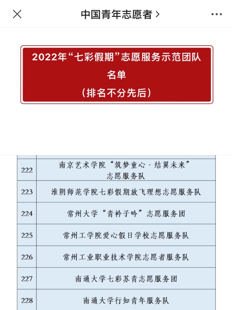 近日,共青团中央青年志愿者行动指导中心、中国青年志愿者协会秘书处公布了1000支2022年全国“七彩假期”志愿服务示范团队名单,我校信息工程学院微光团队从全国4500多支志愿服务团队中脱颖而出,成功入选。