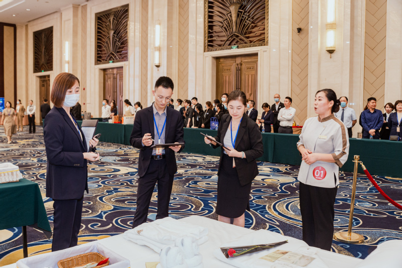 此次竞赛根据共分为前厅接待服务、客房服务、中餐服务和西餐服务四大赛项,来自全市区县共计11家星级酒店,31名选手报名参赛。今年的赛项评价不同于以往,采用实境实操方式进行,评委近距离观察选手对客服务,重点考察参赛人员的业务能力、沟通能力和应变能力。