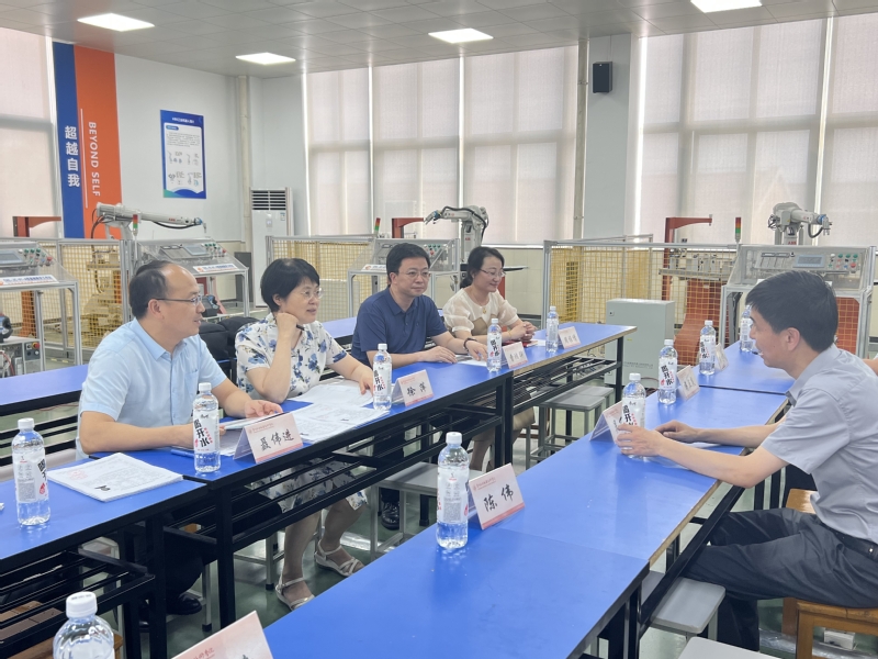 为进一步加强培训管理,提高培训质量,及时总结培训经验,7月22日,江苏省教育厅教师工作处二级调研员徐萍、中职教师培训中心主任曹鸿骅、高职师培中心主任聂伟进、高职师培中心国培项目主任周雅倩莅临我校,调研“机器人系统集成竞赛教练培训”项目实施情况。我校副校长吴丽云陪同调研。