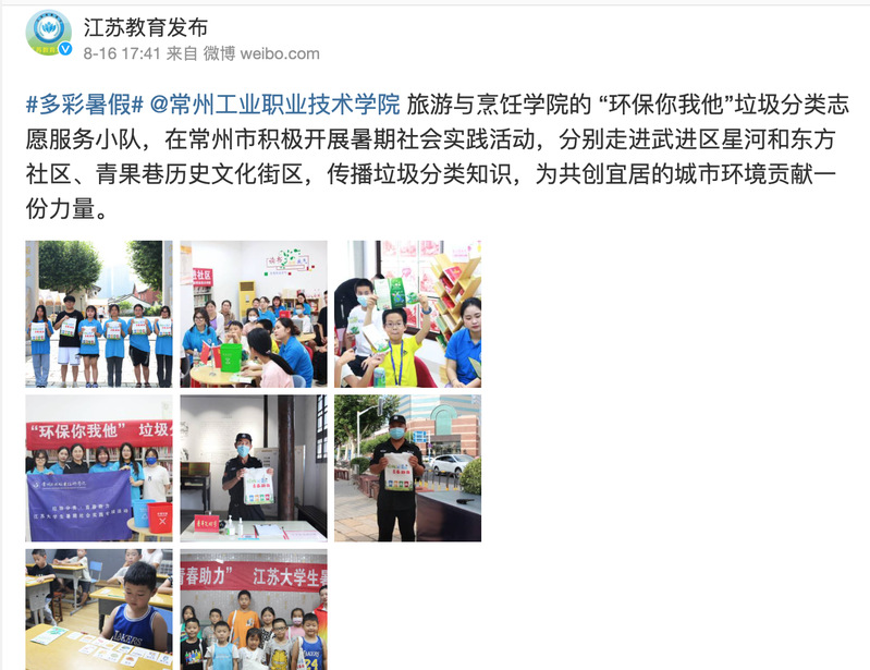 江苏教育发布微博-#多彩暑假#旅游与烹饪学院在常州开展暑期社会实践活动