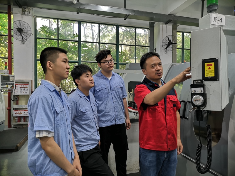 倪贵华(右一)指导学生实训