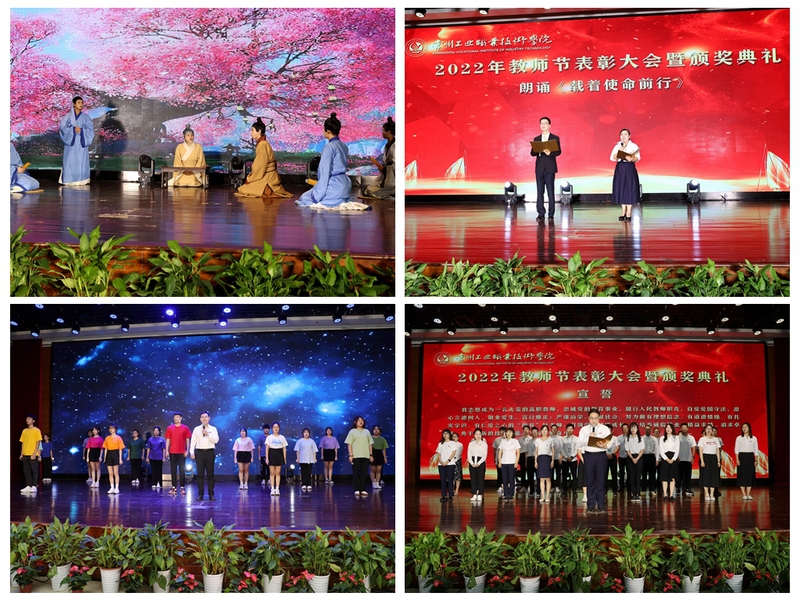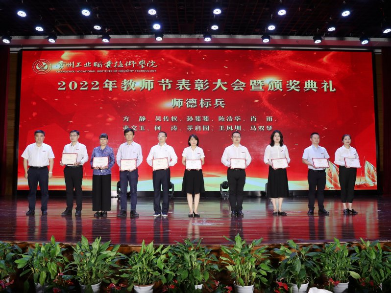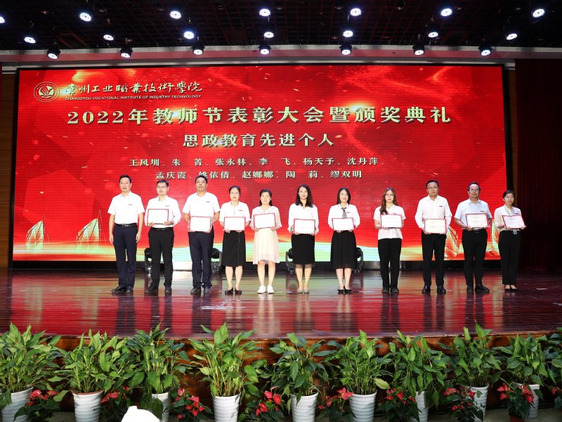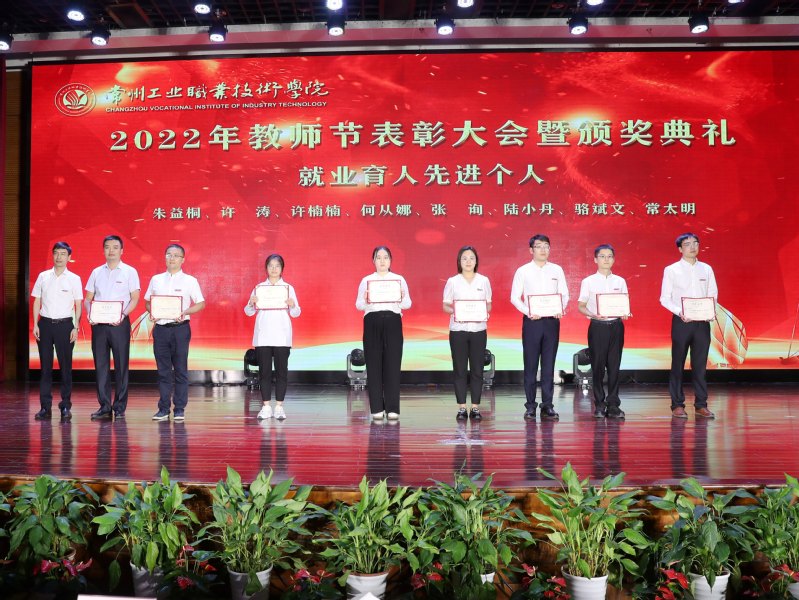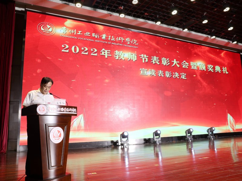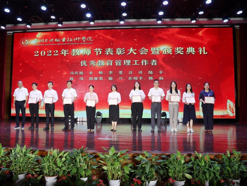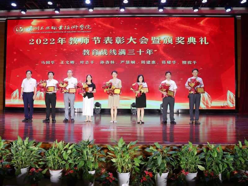 会上,校长杨劲松宣读了《关于表彰2022年教师节教育工作先进个人的决定》,杨劲松、党委副书记毛伯民为教育战线工作满30年人员、优秀校外兼职教师、优秀教育管理工作者、优秀服务工作者等31位先进个人颁奖,副校长姚庆文、吴丽云为思政教育先进个人、就业育人先进个人颁奖,副校长周丽、纪委书记朱晓华、党委宣传部部长檀祝平分别为在教学、科研、校企合作、创新创业工作中取得优异成绩的31位优秀教师颁奖。