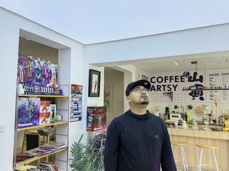 第一次采访,我让他的专业老师刘星和张晔夫妇陪同。在他的艺术咖啡屋转了好几圈,坐下后,呷一口他精心制作的咖啡,我开始提问。