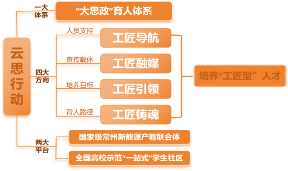 常州工业职业技术学院积极响应新时代思政工作及高质量人才培养要求,将网络思想政治工作融入学校育人体系,形成一项特色鲜明、保障完备、目标明确的网络育人品牌——“云思行动”,旨在充分发挥“融媒体+”优势,创新“云端上”的思政教育模式,推动网络思政工作守正创新,助力师生在技能锤炼与思想涵养的同频共振中,共同迈向“育养匠心、幸福人生”的美好愿景。