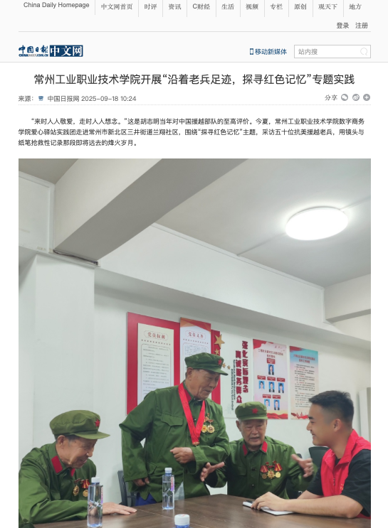 中国日报网:常州工业职业技术学院开展“沿着老兵足迹,探寻红色记忆”专题实践