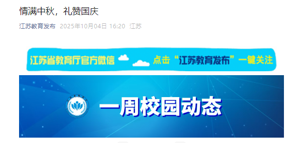 江苏教育发布:情满中秋,礼赞国庆