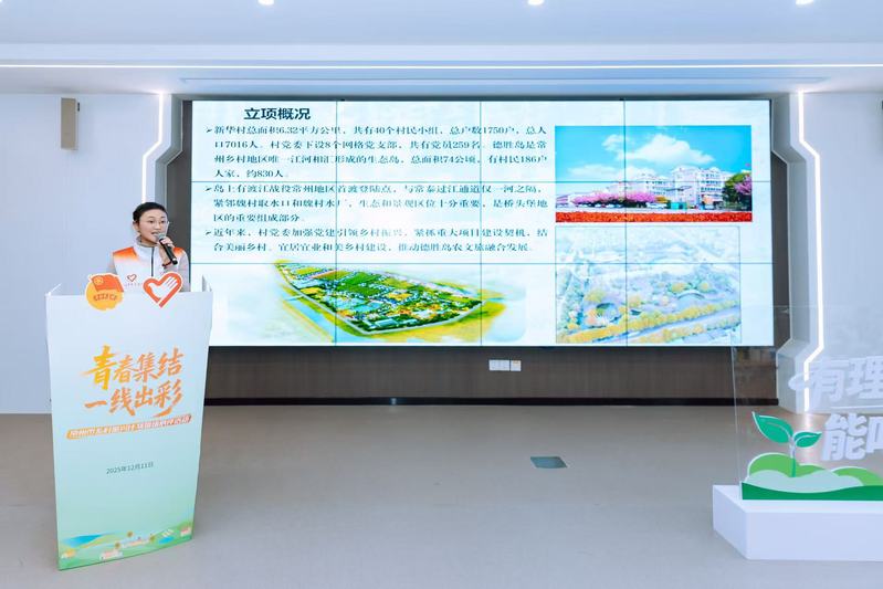 12月11日,2025年度“青春集结 一线出彩”常州市乡村振兴计划现场展评活动在我校举办。常州市委社工部、市农业农村局、市人社局、团市委相关部门负责人,常州市乡村振兴计划志愿者代表,乡村振兴“小组团”青年志愿服务项目代表以及学校志愿者代表等70余人参加活动。15名乡村振兴一线的“00后”志愿者和8个常州市乡村振兴“小组团”青年志愿服务项目代表围绕文旅推介、社会服务、基层治理等多个领域,讲述他们用实干担当为乡村注入活力并收获别样成长的故事。