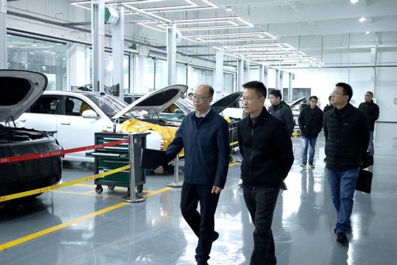 会后,在王志华的陪同下,游振磊一行实地参观了学校百度智能网联创新示范基地与理想汽车实训基地。考察团详细了解了基地的硬件设施配置、教学实训开展情况以及与企业的合作模式,对我校将产业前沿技术融入实训教学、培养学生实践能力的做法给予充分认可。