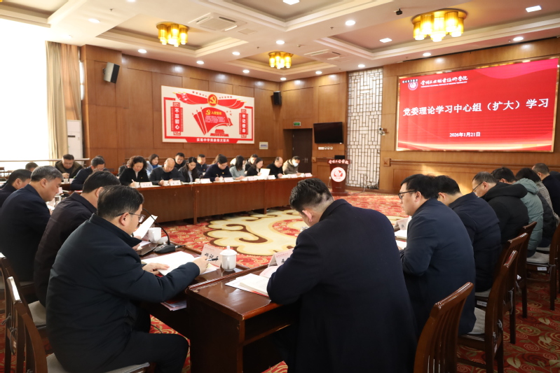 1月21日,我校组织召开党委理论学习中心组(扩大)集体学习会,专题学习习近平外交思想、2026年全国教育工作会议精神和江苏教育强省建设规划纲要(2026-2035)精神。学校党委理论学习中心组全体成员参加学习,会议由党委书记席海涛主持。