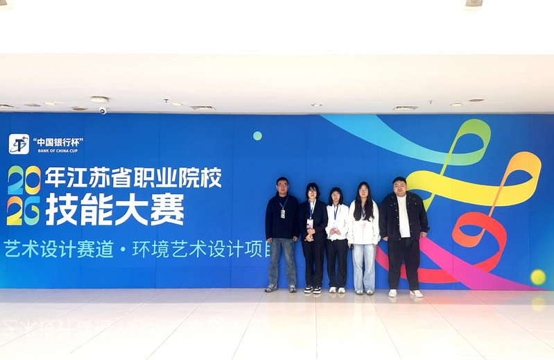 4月10-12日,2026年江苏省职业院校技能大赛(高职组)艺术设计赛道“环境艺术设计”赛项在苏州工艺美术职业技术学院举行。全省54支学生队伍同台竞技,竞争异常激烈。我校艺术创意学院陈苏滢、江佳琦、梁圆三位同学,在颜文明、王彦霖两位老师的精心指导下,凭借扎实的专业功底、出色的设计创意与稳定的现场展示,荣获学生组一等奖。