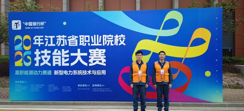 4月16-17日,2026年江苏省职业院校技能大赛能源动力赛道“新型电力系统技术与应用”项目在南京工业职业技术大学举行。我校智能控制学院李永杰和刘陈老师参加教师组竞赛,力压群雄,最终以优异的成绩获得一等奖总分第一名;由李永杰和韩迎辉老师指导的李宇航、徐犇犇和刘储源三位选手不畏强手、奋勇拼搏,勇夺江苏省二等奖总分第二名,为学校2026年江苏省职业院校技能大赛业绩添金加银。
